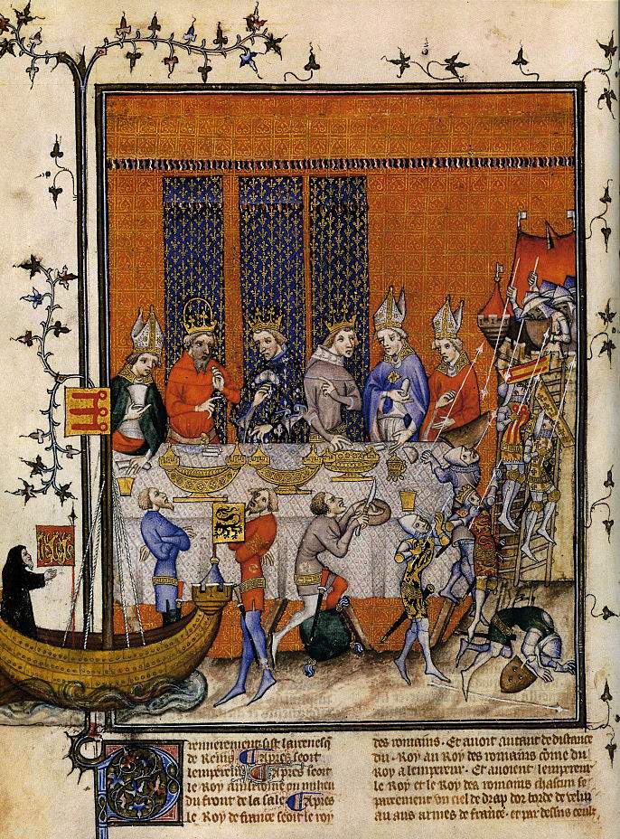 O Rei começa por servir de copeiro, pondo os pratos diante dos mendigos.
